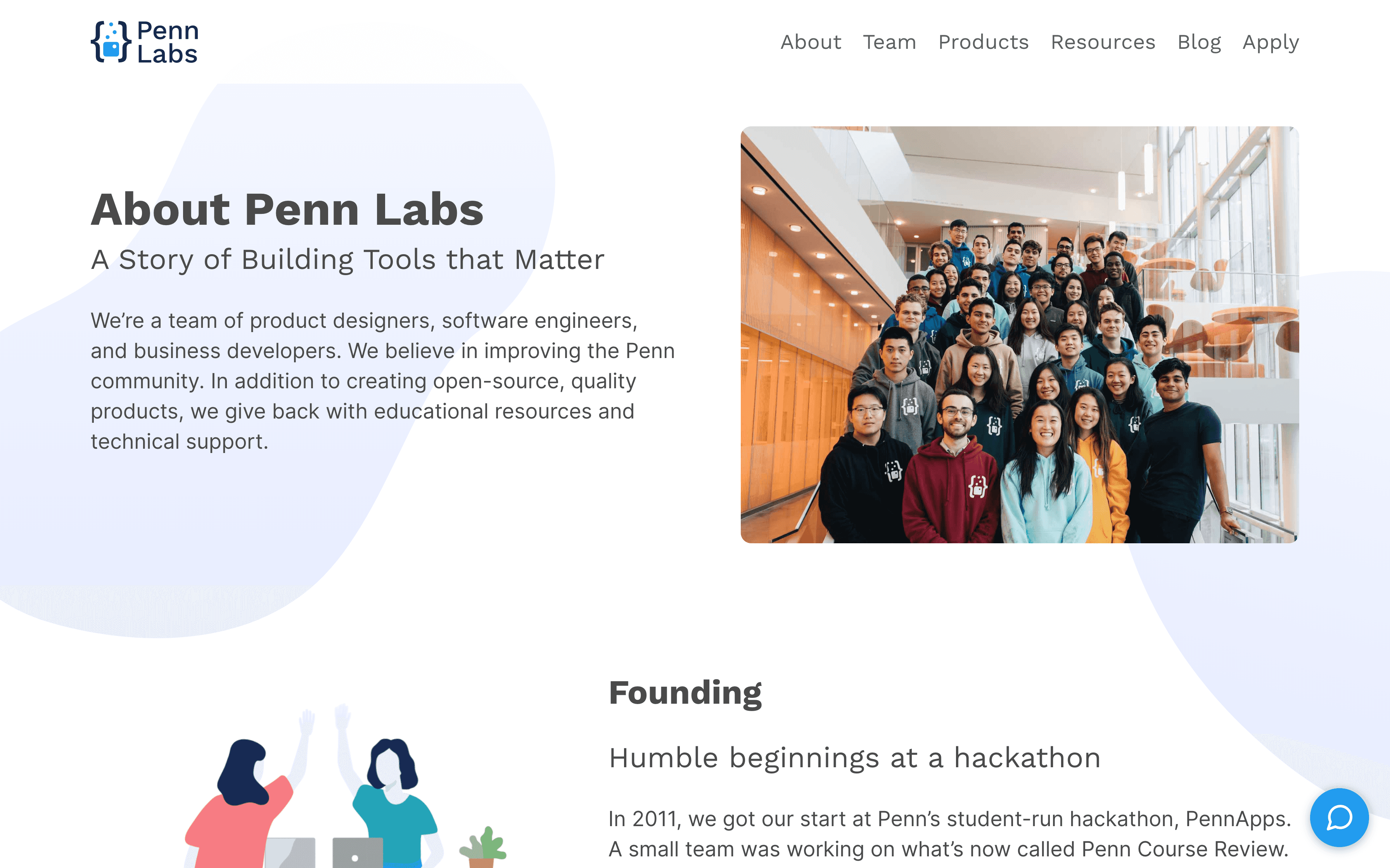Website showcasing our products, teams, blog posts, and history.